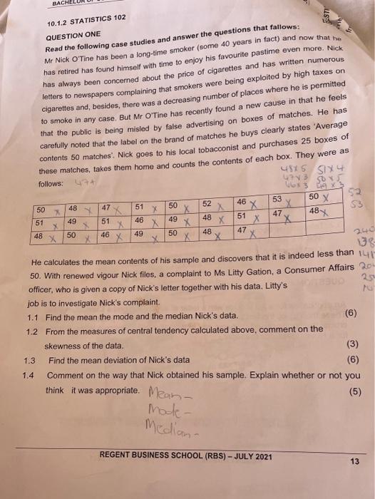 Solved Bach 10 1 2 Statistics 102 Question One Read The Chegg Com